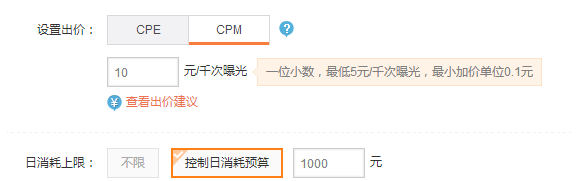 注意:计划上限不得低于出价的10倍;上限调低第二天生效,调高即时生效