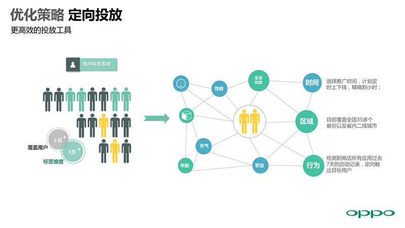 OPPO广告投放平台是基于OPPO公司旗下的手机为承载的媒介平台,包含OPPO软件商店、OPPO浏览器、主题商店、游戏中心、音乐、视频、阅读推等多元化应用,目前日均活跃用户达8千万,日均内容下载量高达1亿。作为行业领先的手机厂商媒介平台,我们始终坚持简单专注,品效合一的运营理念,致力于为广告主提供应用分发、信息流广告、品牌广告等服务,提供专业的个性化推广方案,帮助广告主实现目标用户的触达,达成营销目的。