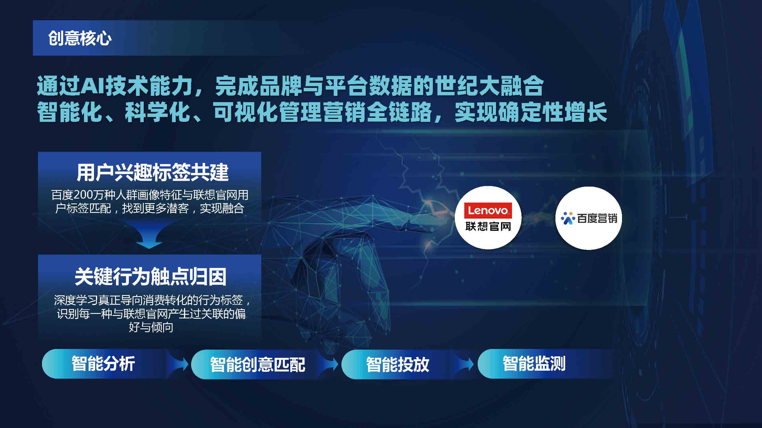 百度200万种人群画像特征与联想官网用户标签匹配,找到更多潜客,实现融合。