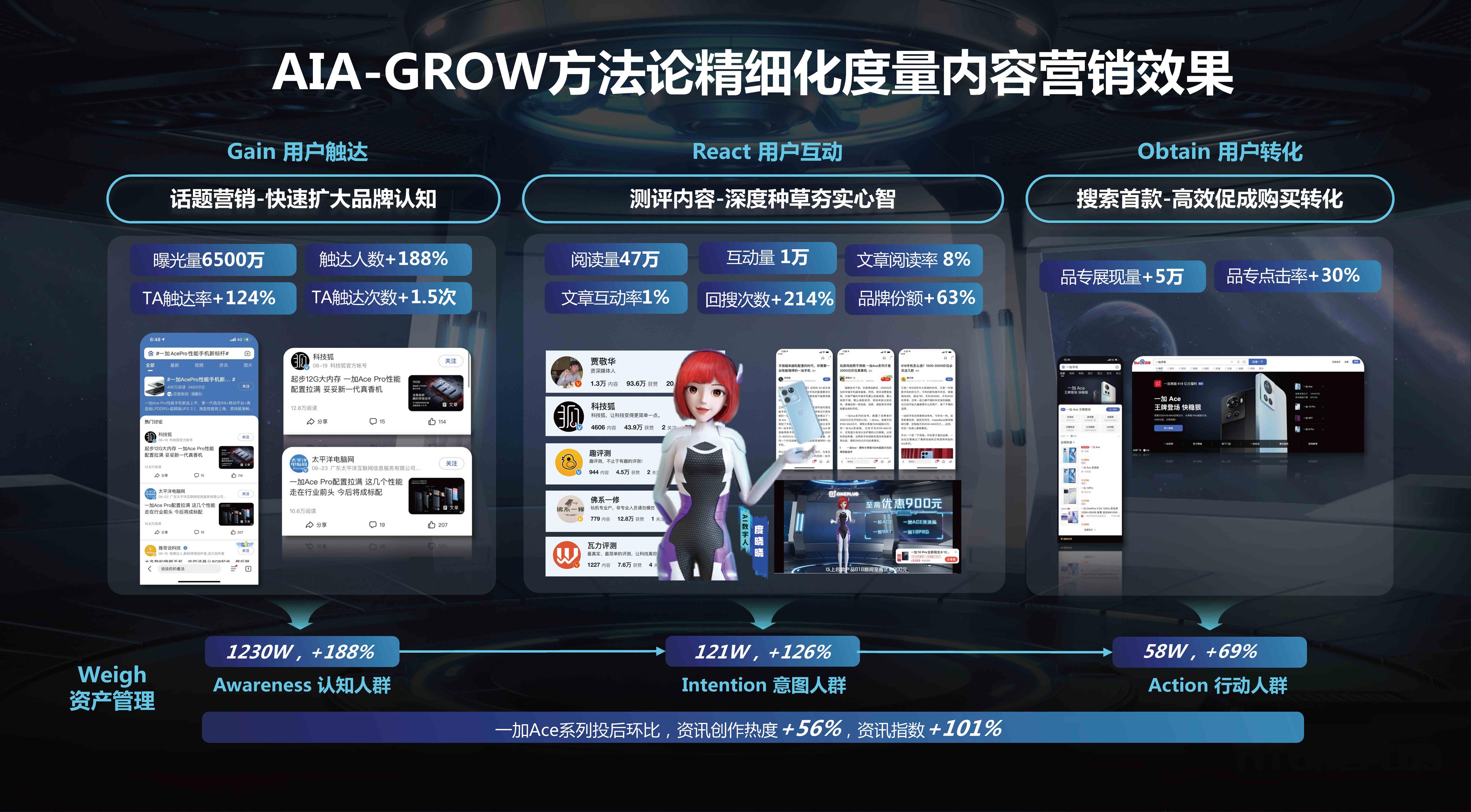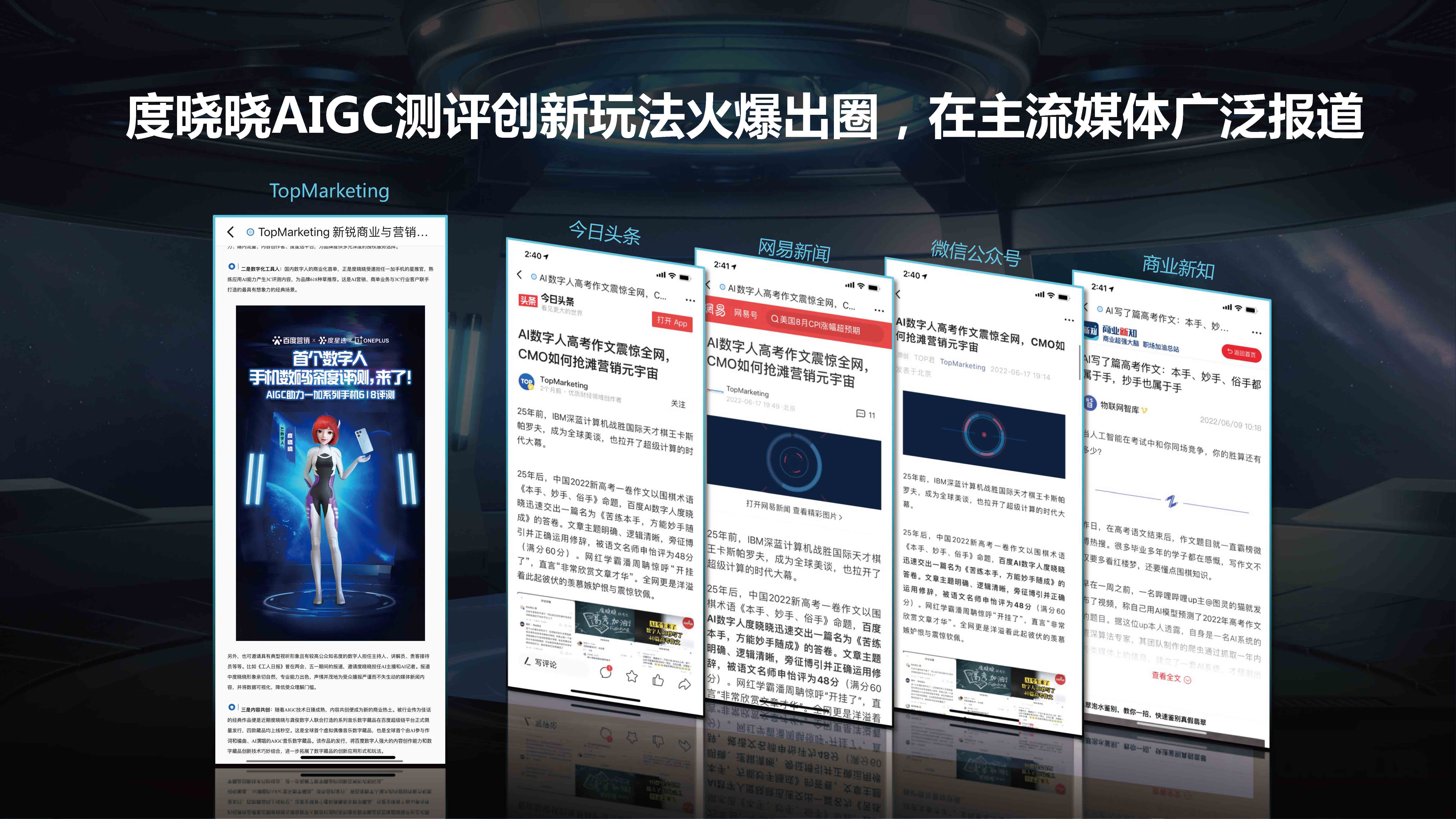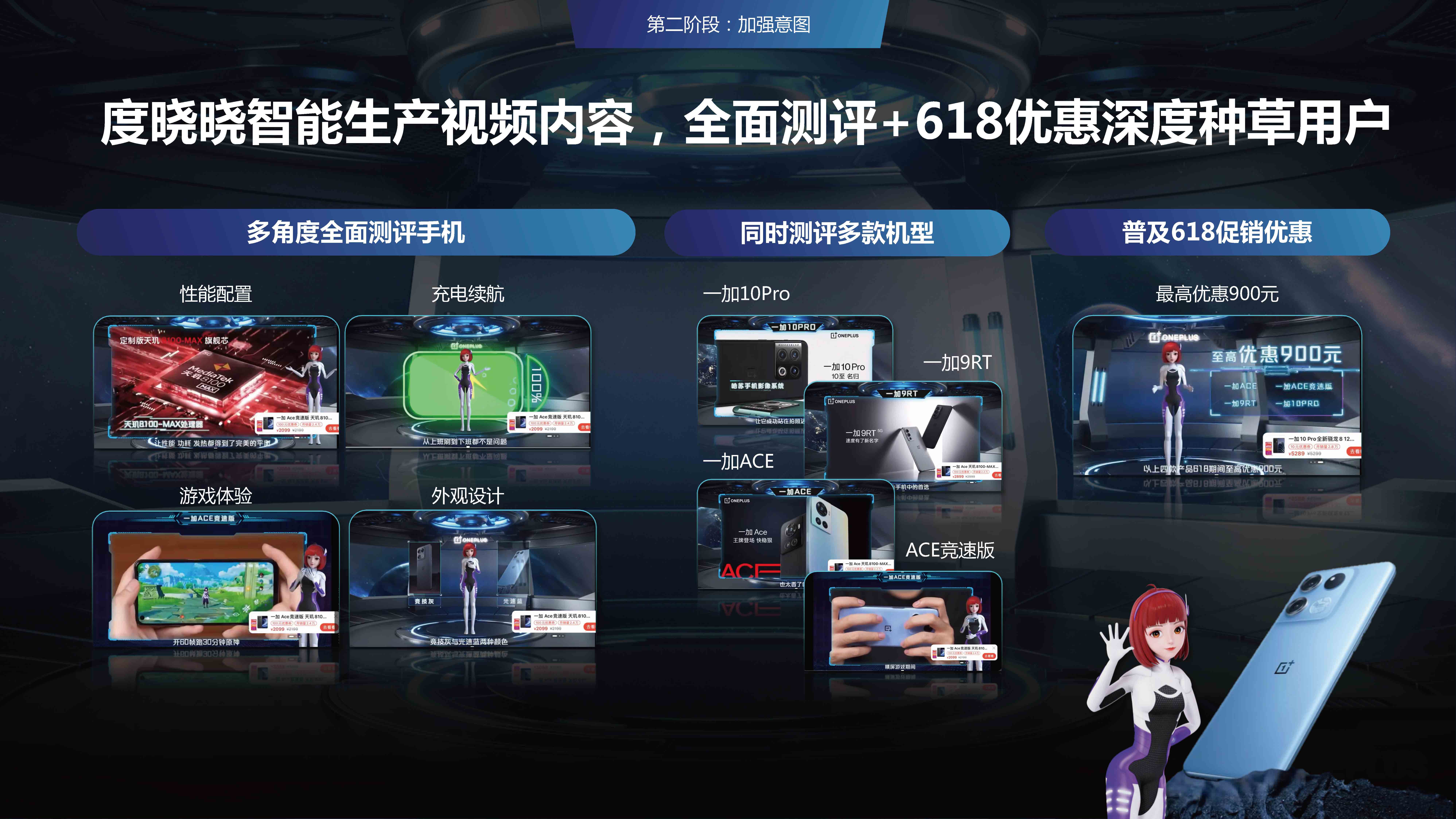 数字人度晓晓AIGC能力生产评测视频助力一加618种草,打开了web3.0时代全新内容营销方式,首创百度特有AIGC内容营销玩法。