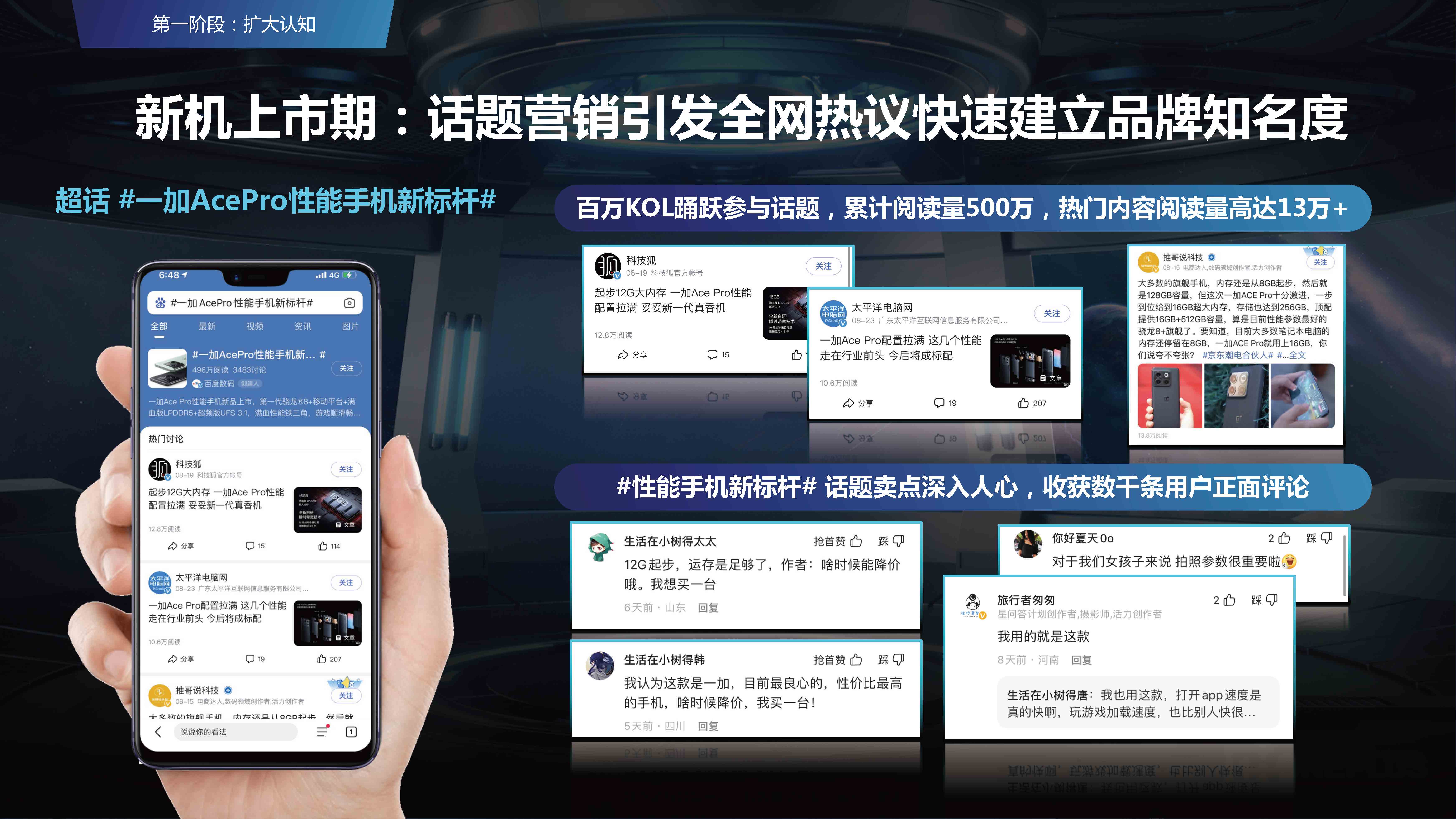 定制话题#一加AcePro性能手机新标杆#,百万KOL参与话题讨论,累计阅读量突破500万。