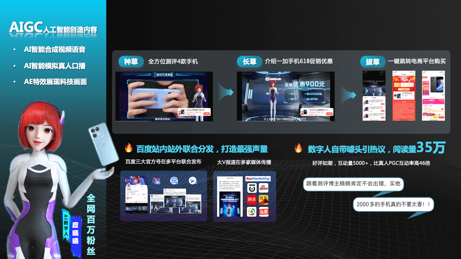度晓晓利用AIGC能力生产视频,作为百家号作者分发内容+挂载商品, 助力一加内容营销闭环。