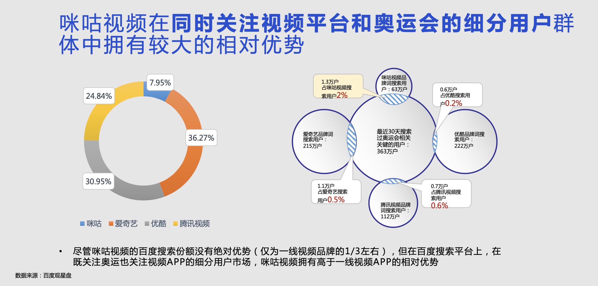 咪咕视频在同时关注视频平台和奥运会的细分用户群 体中拥有较大的相对优势