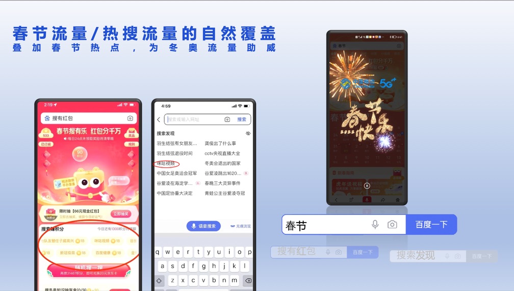 4、热点开屏用商联动运营:百度主场+咪咕主场流量双赢