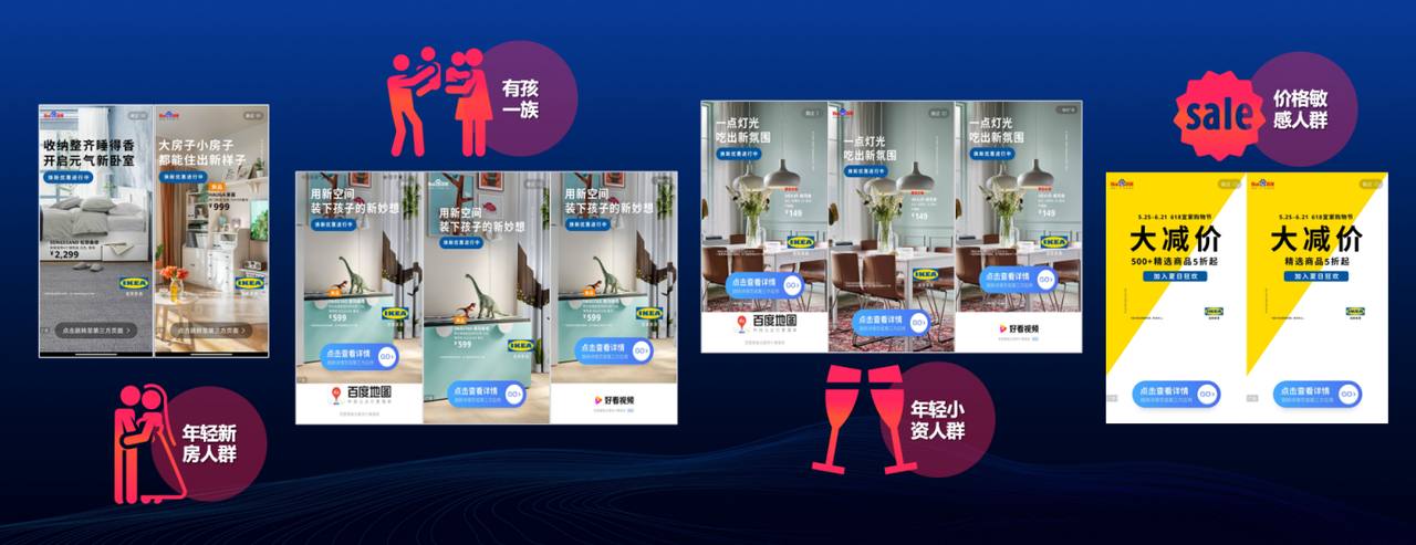 宜家作为全球知名家具和家居零售商,旨在抓住旺季装修刚需暴发点/新店(南宁、昆明)开业契机,向核心受众传达能为消费者提供多种家居家装解决方案,希望通过高流量平台百度的广告投放,影响有需求的人亲临宜家门店或是线上官网购买符合心意的家装产品,从而提升自身门店到访量和线上官网流量,实现线上+线下的零售突围。