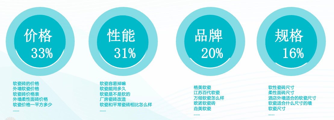 软瓷人群关注度首选集中在价格上,有明显的阶层需求分布;