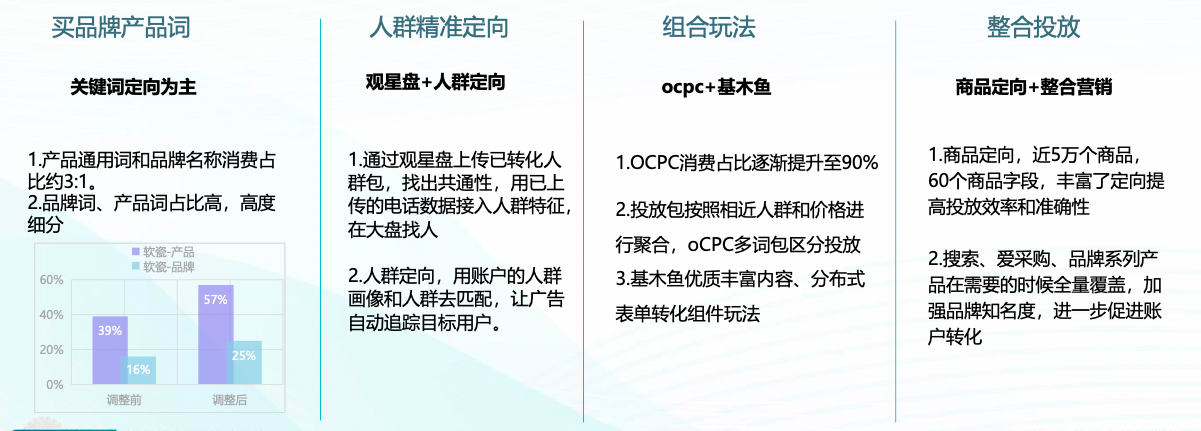 垚美软瓷与百度合作近8年,目前企业发展良好,需要大批量的客户入驻,提升企业效益。投放痛点主要集中在搜索拓量难、线索成本高,急需合适的投放优化方法,提升有效线索质量。