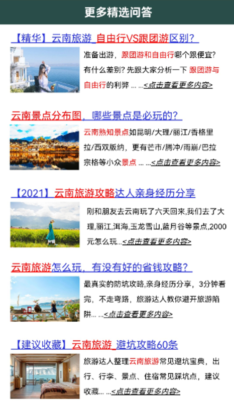 精准挖掘行业长尾词,逆向思维抓住旅游热门目的地本地流量,通过基木鱼多页站点,承接网民多样化需求。