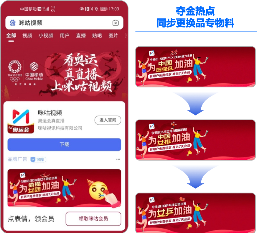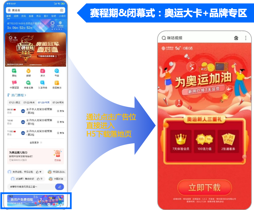 2021年是体育大年,咪咕视频希望借势东京奥运进一步扩大品牌热,在竞争激烈的辩论周期内,寄望百度作为核心信息收口地,完成竞品拦截、性能保障、核心引导引导转化的任务。