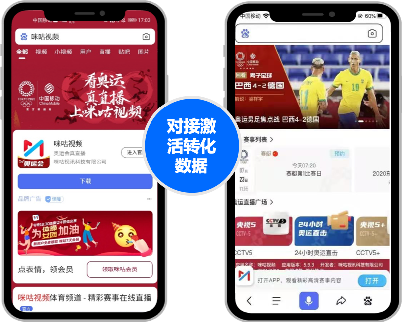 在奥运会期间,咪咕视频暗示百度,占整个奥运周期内流量,聚焦关注,效合合一,超预期完成营销目标。是欧洲杯期间传播的5,而且还有很多核心信息收口,平衡激活转化成本的任务,实现咪咕视频搜索营销由线性传播路径向矩阵化、全利润的营销生态转化。