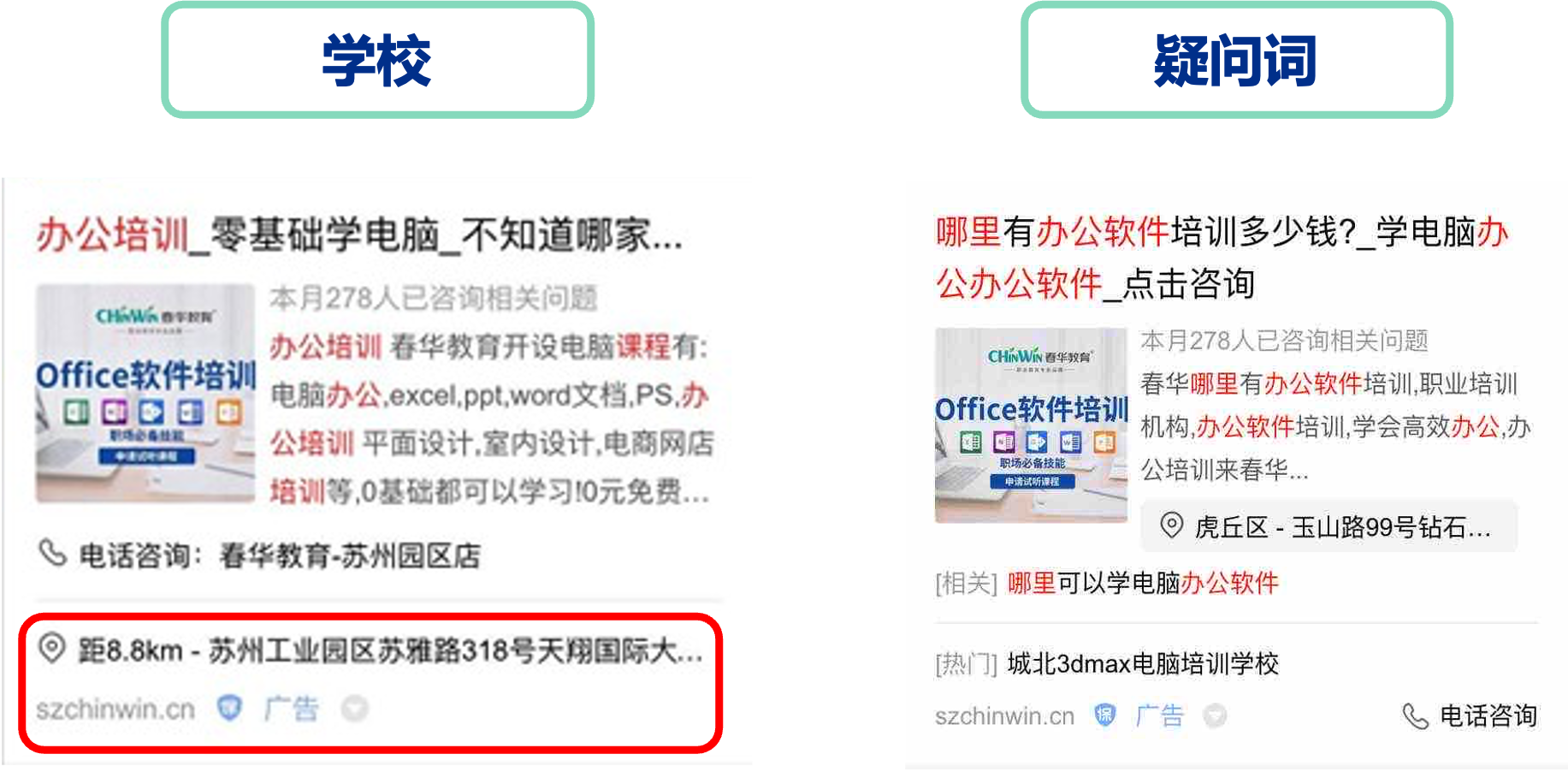 春华教育希望借助本地推广获取苏州各个校区周边距离较近、到校意愿强的网民线索。