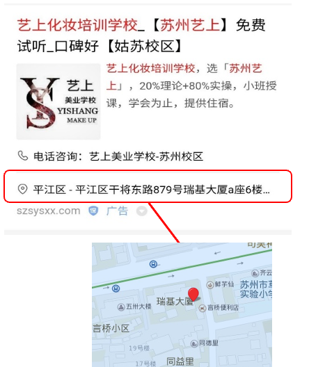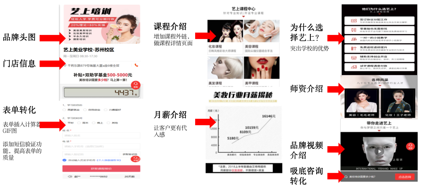 艺上通过线上营销招生的模式是:吸引网民在线咨询美妆师、美发师等课程以及填写表单从而获取学员线索,再通过进一步的沟通引导学员至线下校区学习课程和缴纳学费。艺上在投放搜索推广的过程中,无法精准、便捷地将不同地域线索引导至对应的校区,因此尝试本地推广。