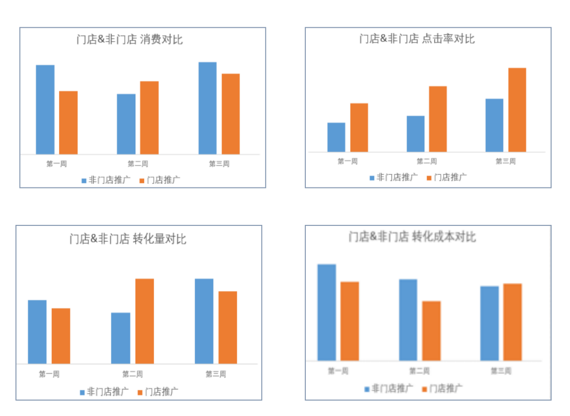 新科教育投放本地推广3周后,消费、点击率、线索转化整体呈现上升趋势,且转化成本相对稳定,其中点击率提高73%、转化成本降低15%。