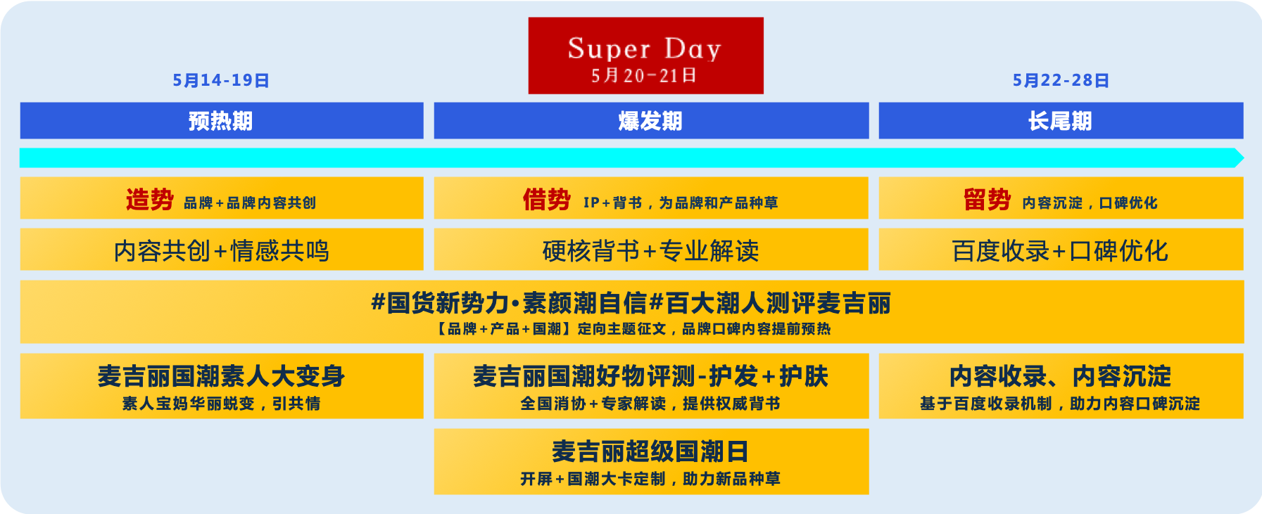 借势超级 IP—百度国潮季,撬动顶配活动资源,从“品牌+国潮”、“产品+国潮”、“研发+国潮”三个层面讲述麦吉丽国潮故事,加乘品牌内容和声量,跨屏种草麦吉丽国潮好物。
