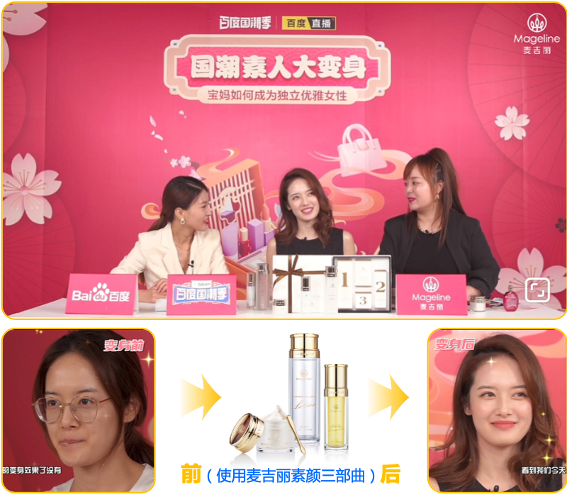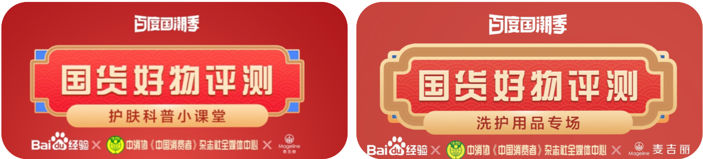 百度联合中消协打造《国货好物评测》专题,麦吉丽作为唯一一家美妆品牌,和百度国潮季、中国消费者协会一同参与节目策划和制作,以国货当潮态度、以权威科学立场、以知识消费观点,带出中消协、专家对麦吉丽品牌、产品、研发实力的多维度认可。