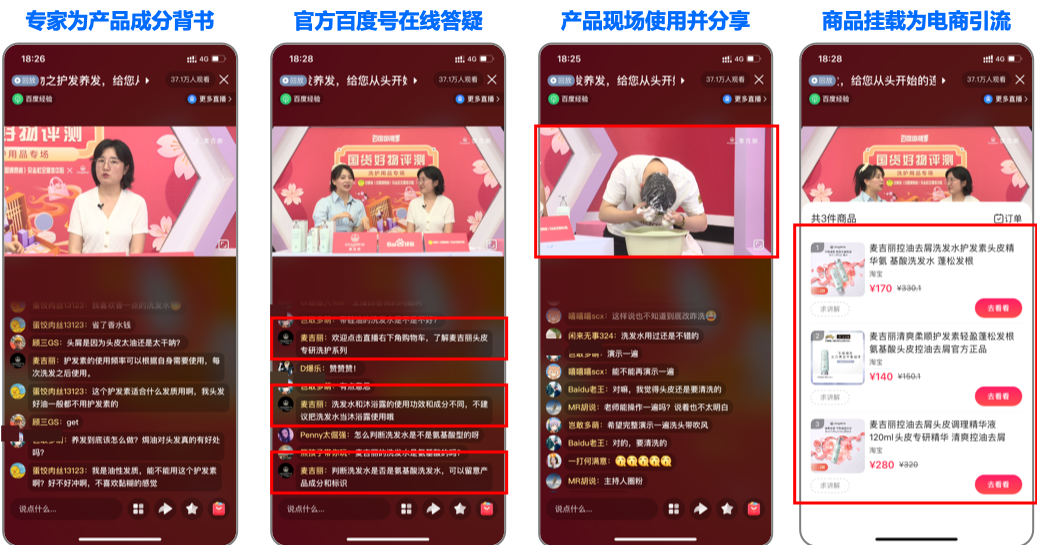 5月20日,邀请护发领域专家李丽做客《国货好物评测·洗护用品专场》直播间,通过产品成分解读、在线答疑、产品现场使用分享全面解读麦吉丽洗护系列产品,并通过商品挂载为电商引流。