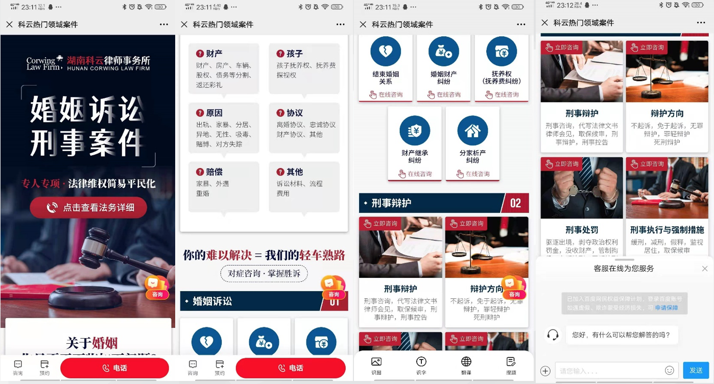 首页头图色彩用稳重的蓝黑色,白色字体更突出律所转做线上咨询。