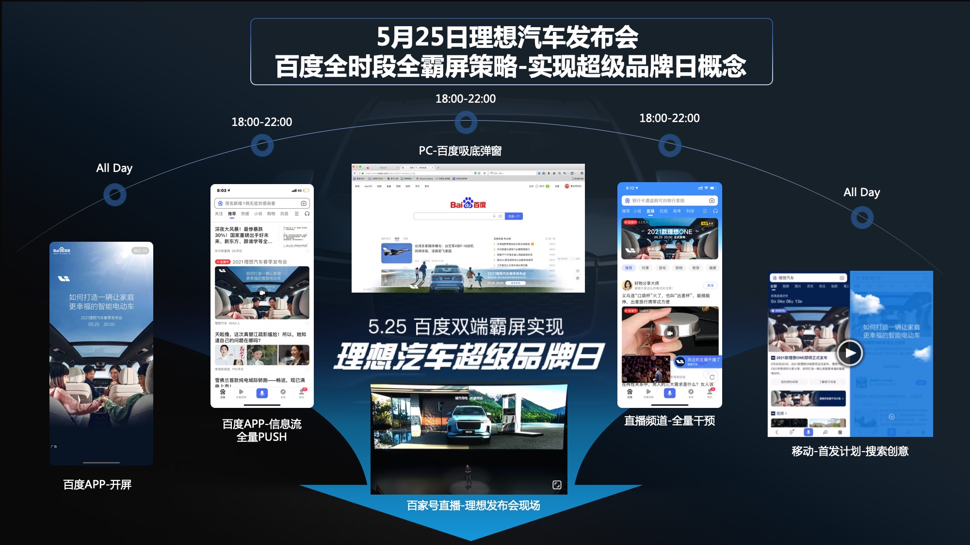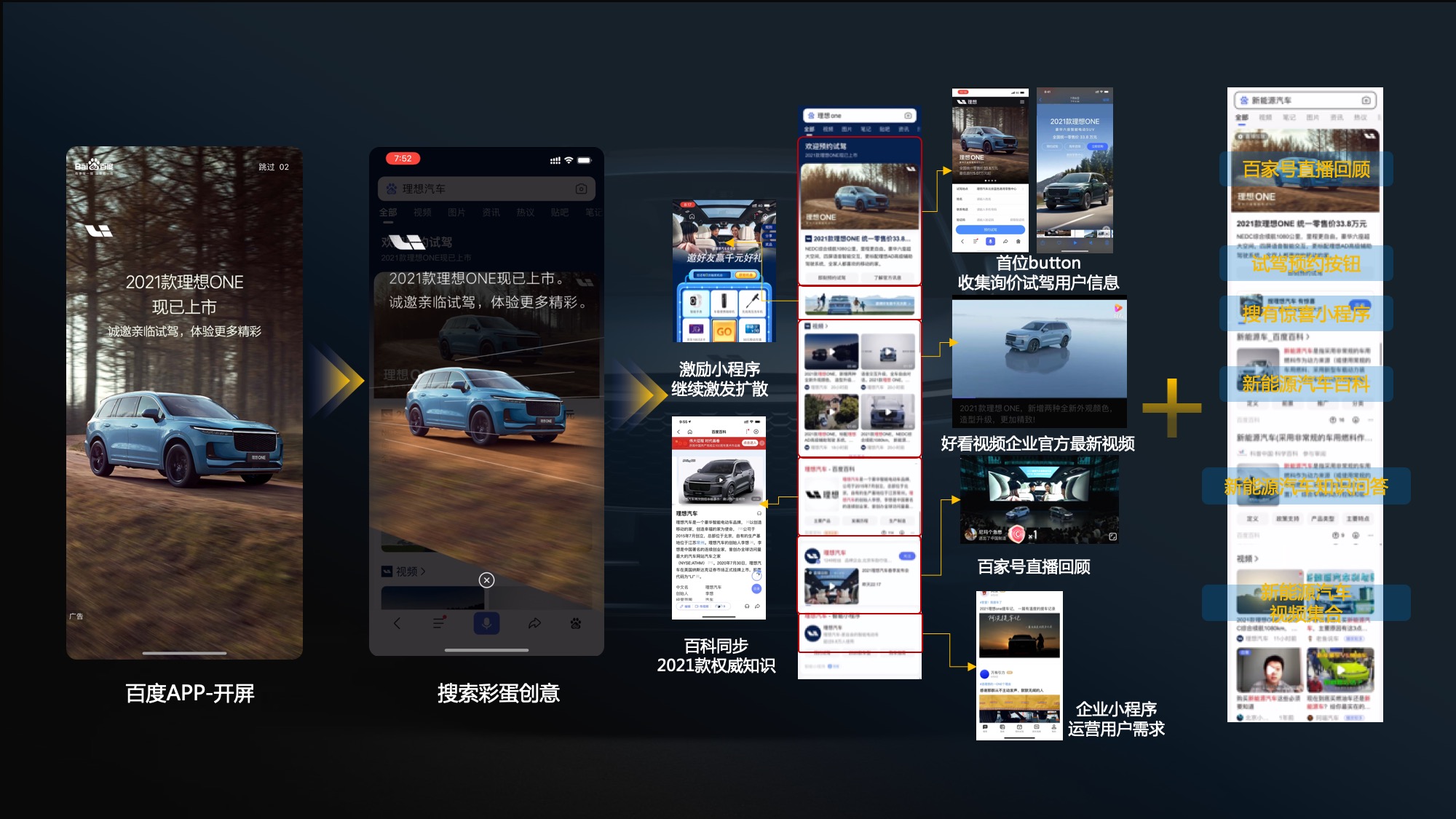 2. 以百家号做直播阵地,以搜索阵地串联全内容,百度全域资源+创意彩蛋联动,实现理想汽车官网/搜索阵地/百家号直播导流三通。