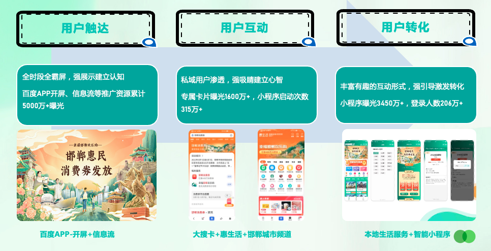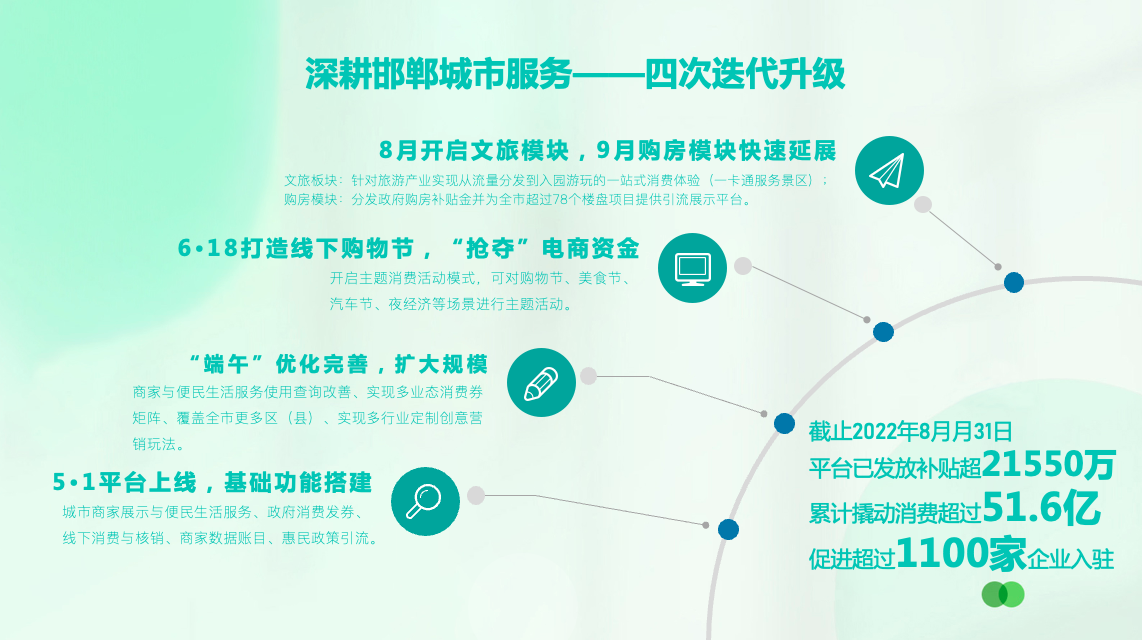 对城市,打造爆款IP:为邯郸政塑造“幸福邯郸欢乐购”惠民导购平台IP,整合政府端包含但不限于商务局、文旅局、本地商家等惠民资源,一站式解决政府惠民、商家福利的便捷分发及使用引导本地消费,持续促进本地消费增长 。