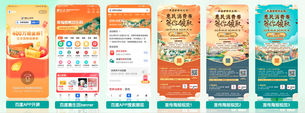 百度APP启动端内全量资源覆盖:包含百度APP开屏、信息流、搜索、惠生活banner、邯郸城市频道banner等