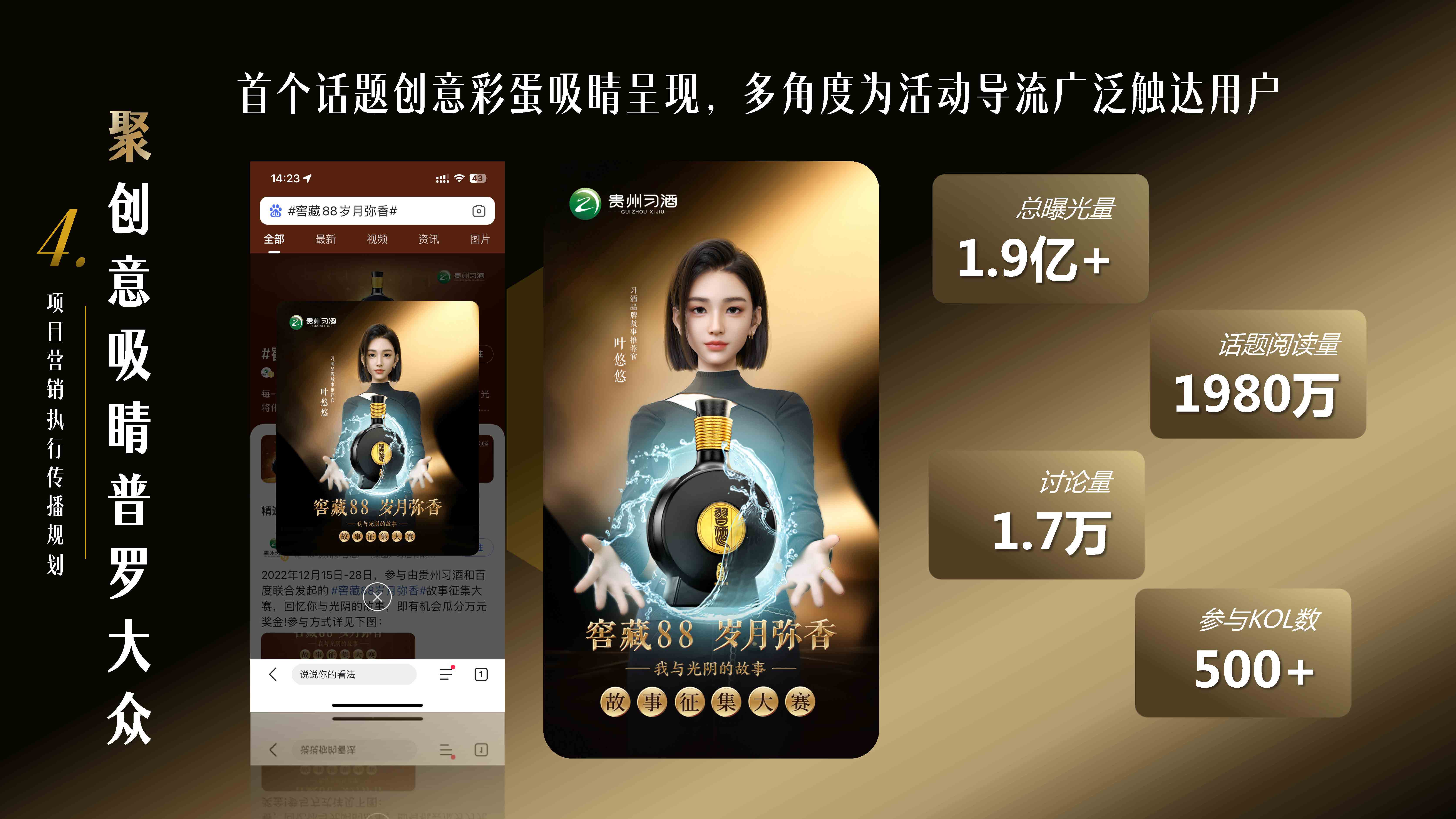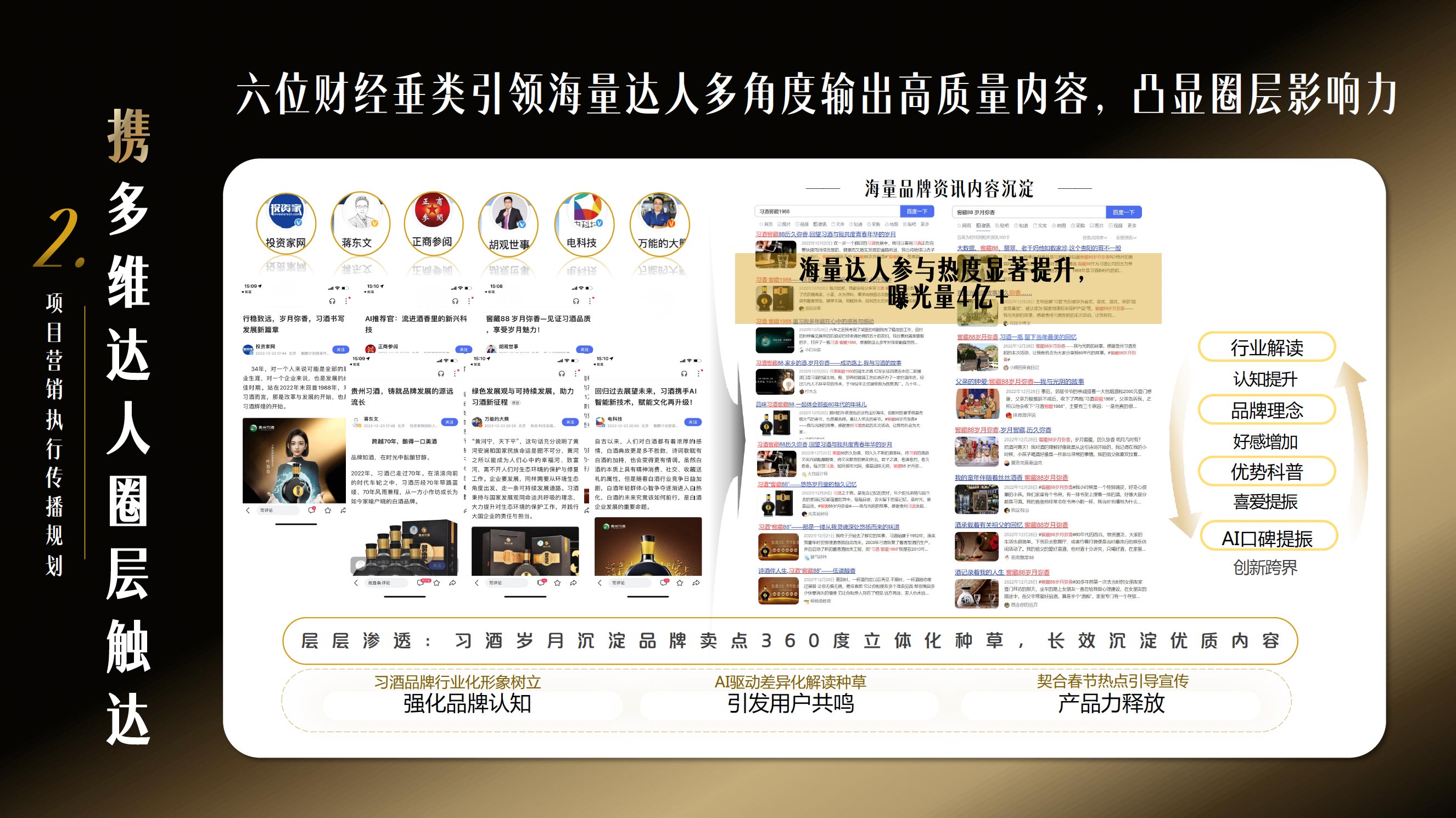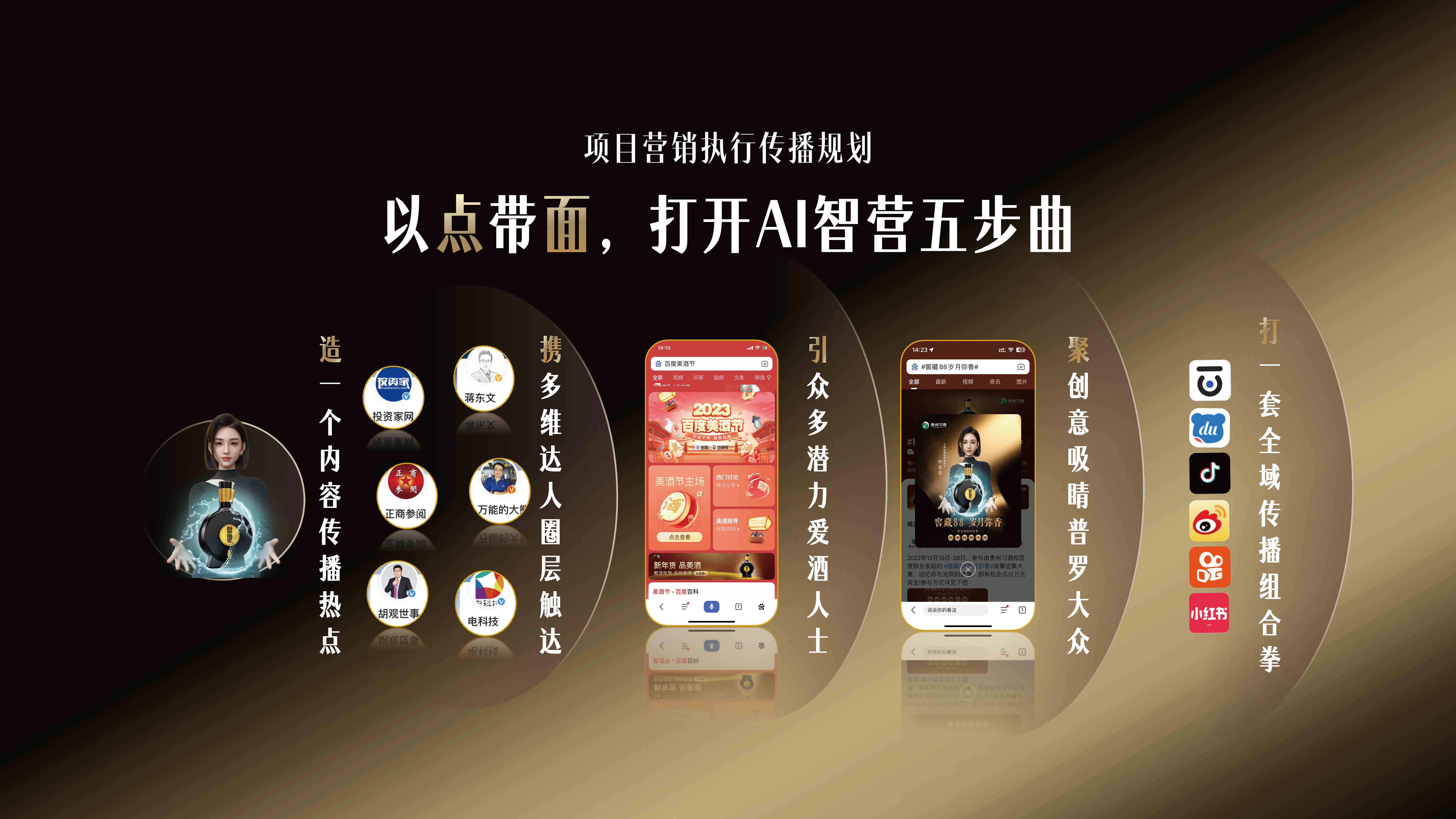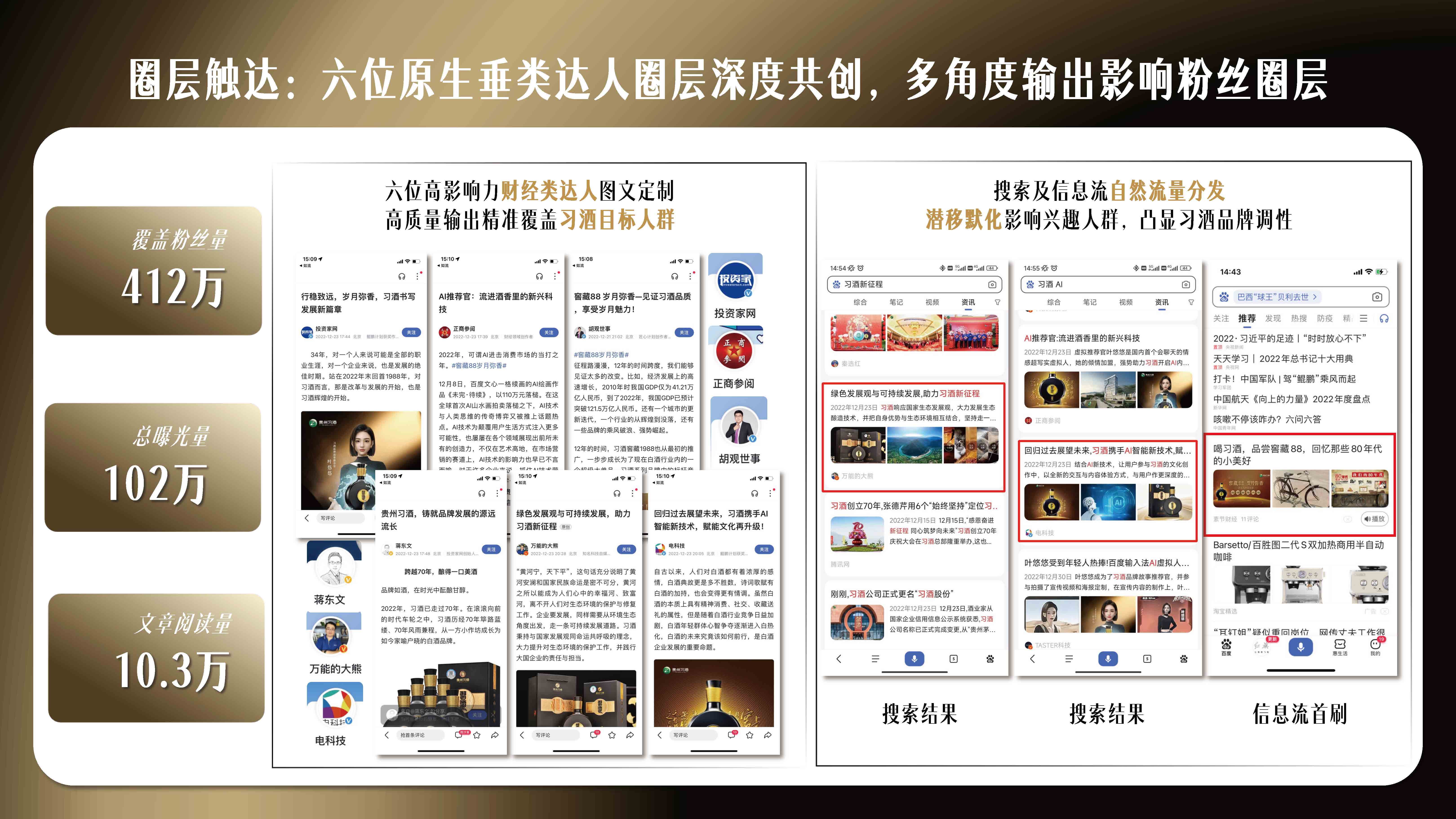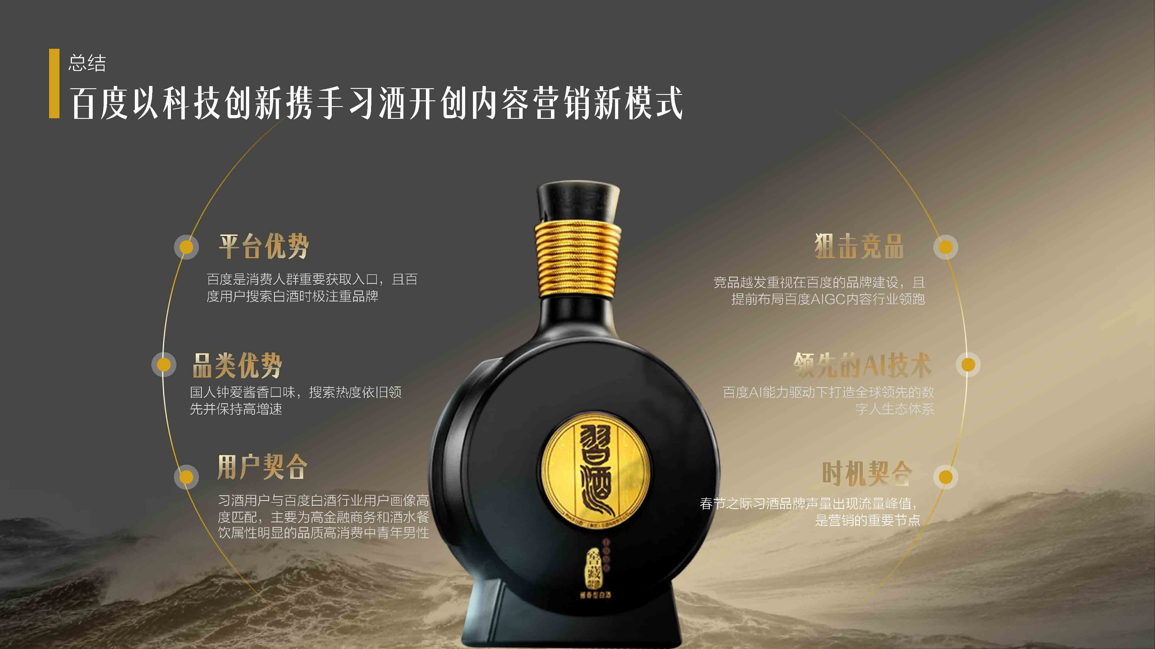 以科技创新携手习酒开创内容营销新模式,从一个内容热点→到垂类圈层触达→到潜力爱酒人士→到普罗大众→全域传播,以点到面百度AI智能营销五步曲