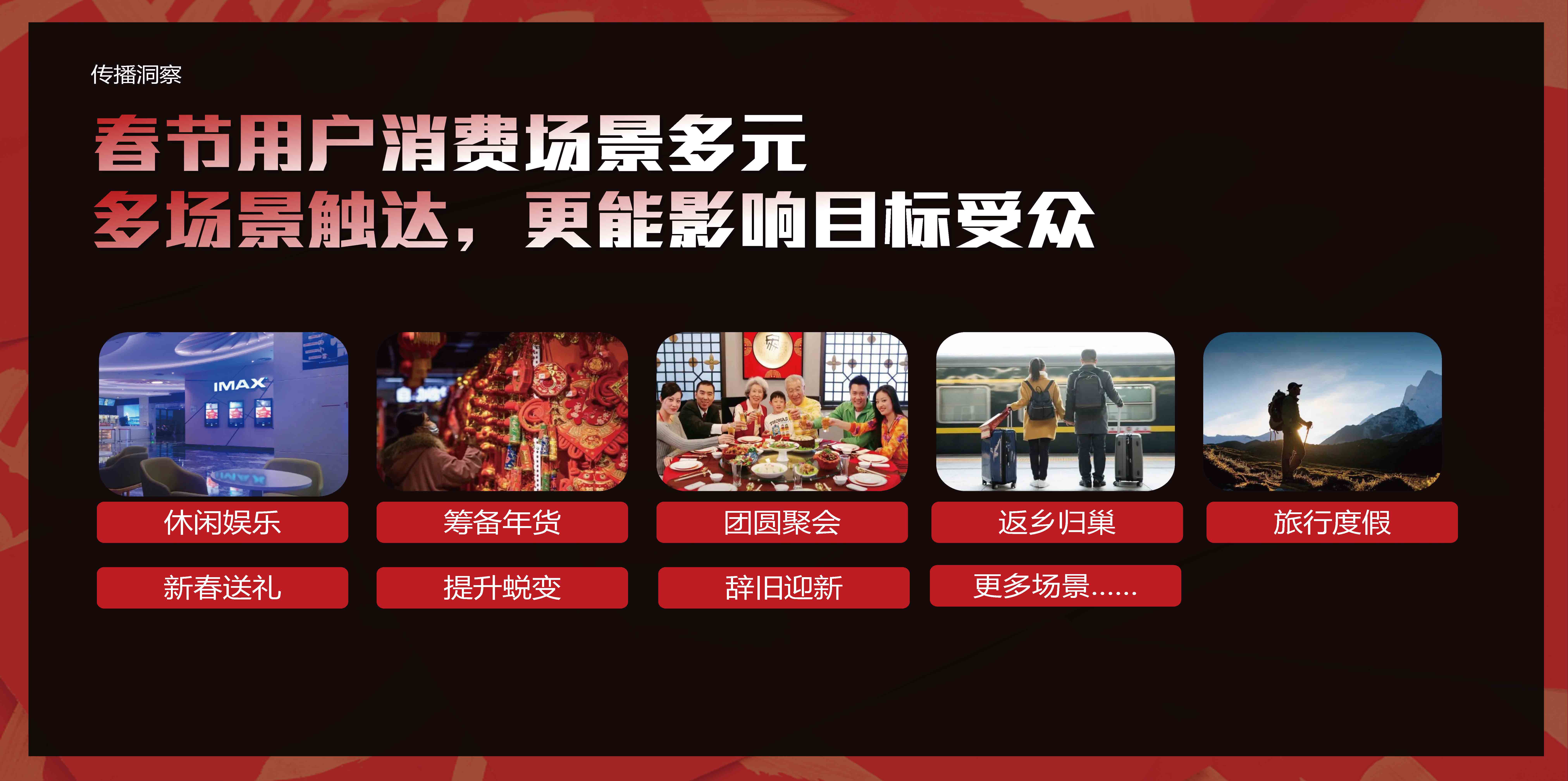 春节之际,深耕“吉文化”的王老吉更新#王老吉含金银花,健康过年,喝红罐王老吉#的营销主题,通过返乡回家、除夕团聚、拜年送礼等春节生活场景触达用户,将新的营销主题植入消费者的心中,提升王老吉品牌好感度,助力王老吉成为春节时刻“健康过年”的代名词。