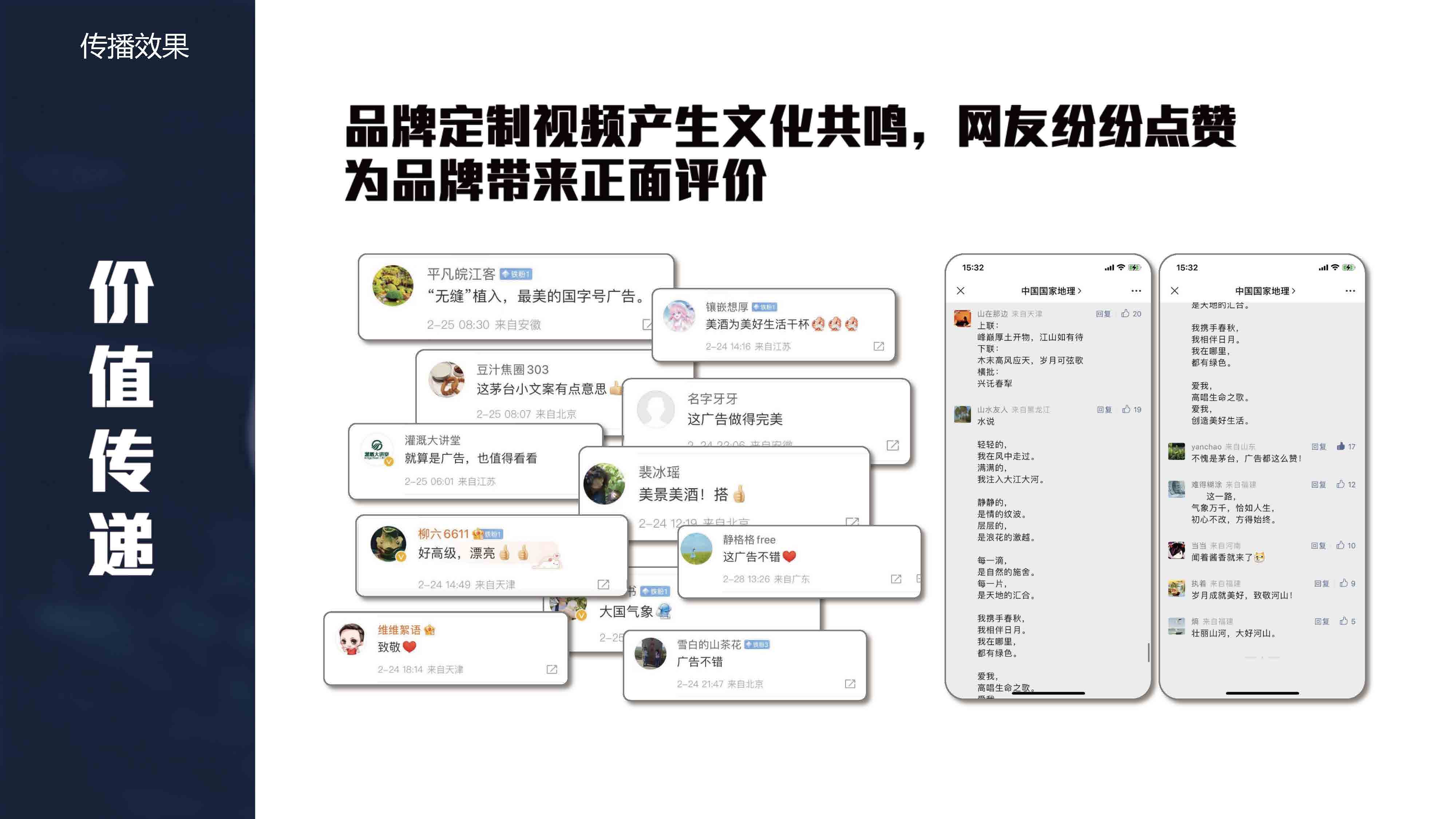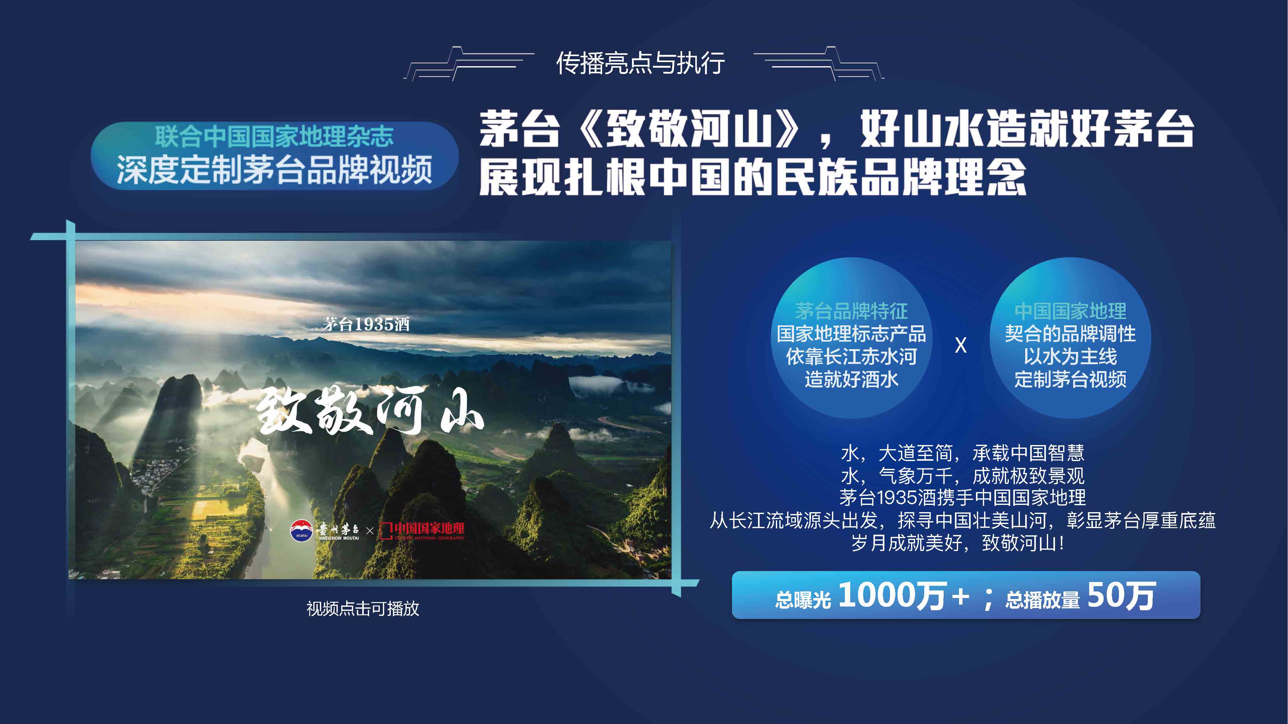 好山水造就好茅台,展现扎根中国的民族品牌理念。内容总曝光1000万+;总部播放量50万。