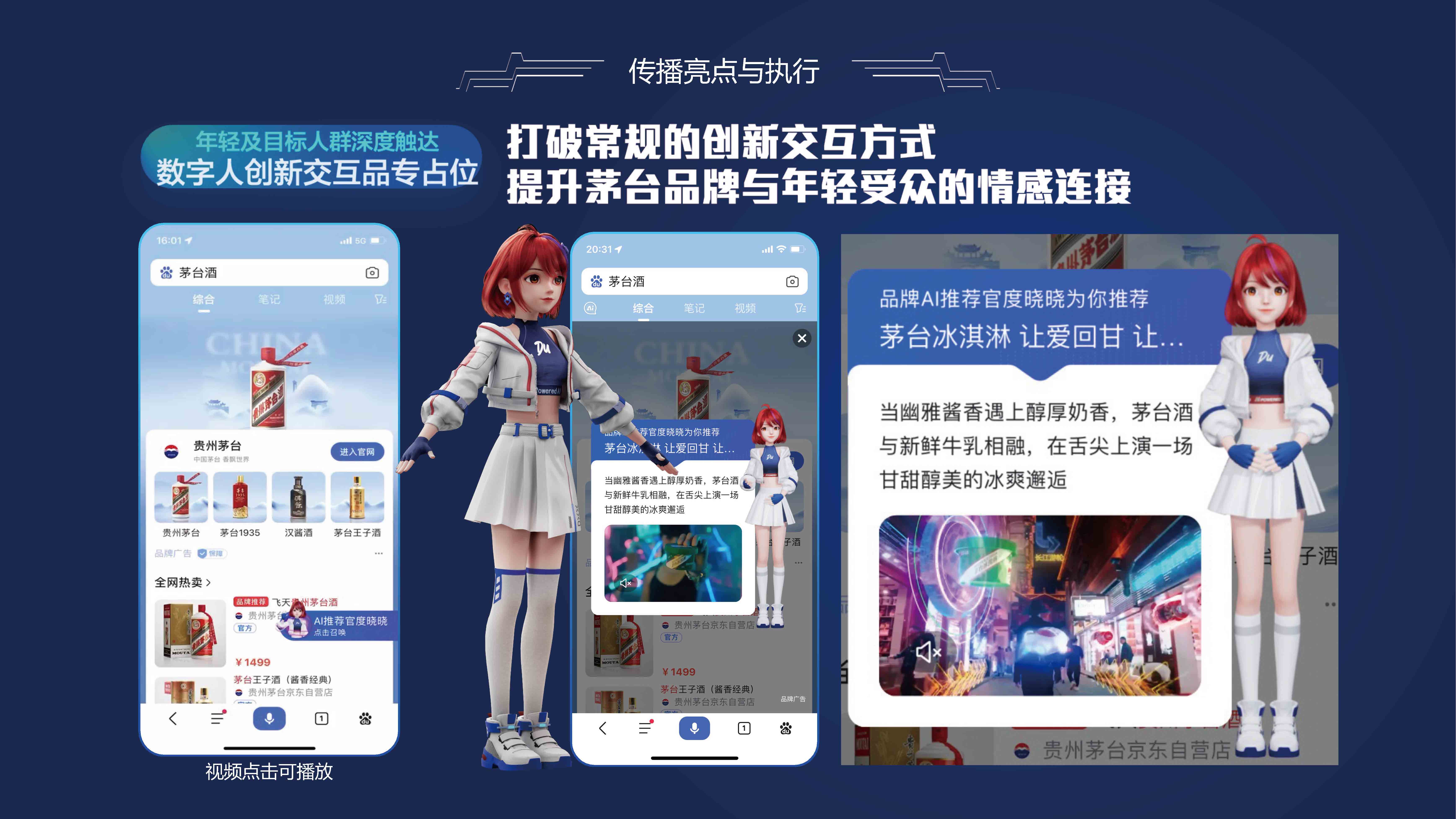 借助数字人热点,打造品牌AIGC话题#品鉴茅台冰淇凌#和创新交互品专广告,深度渗透年轻群体。