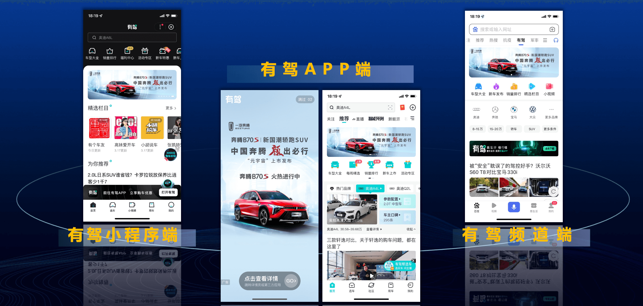 在有驾垂类阵地资源的运用上,整合APP+小程序+垂类频道三端资源,全面覆盖重点重点用户圈层并导流至发布会直播。双阵地资源矩阵最终以近1亿次曝光,为奔腾B70S直播发布释放终极影响力。