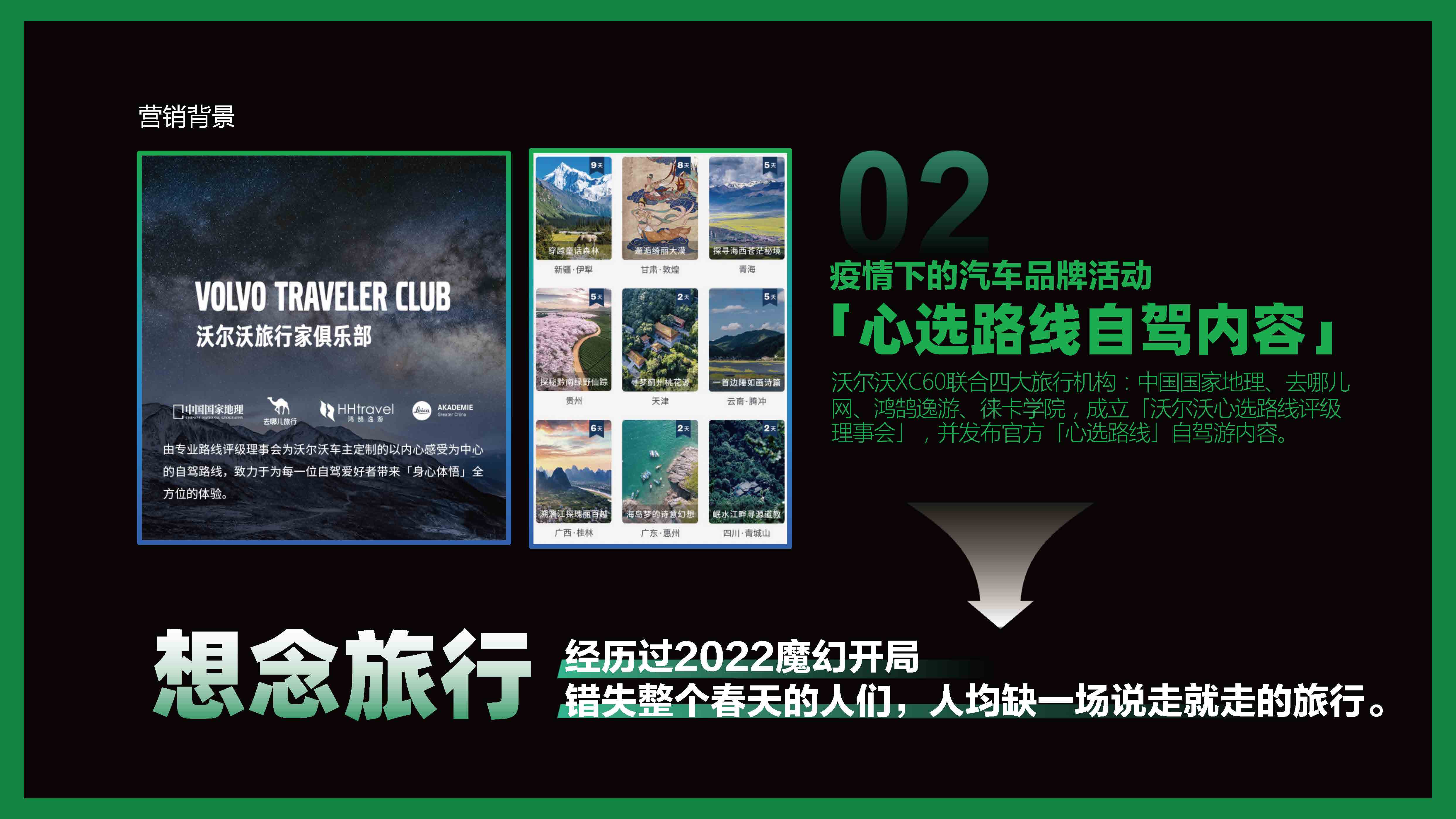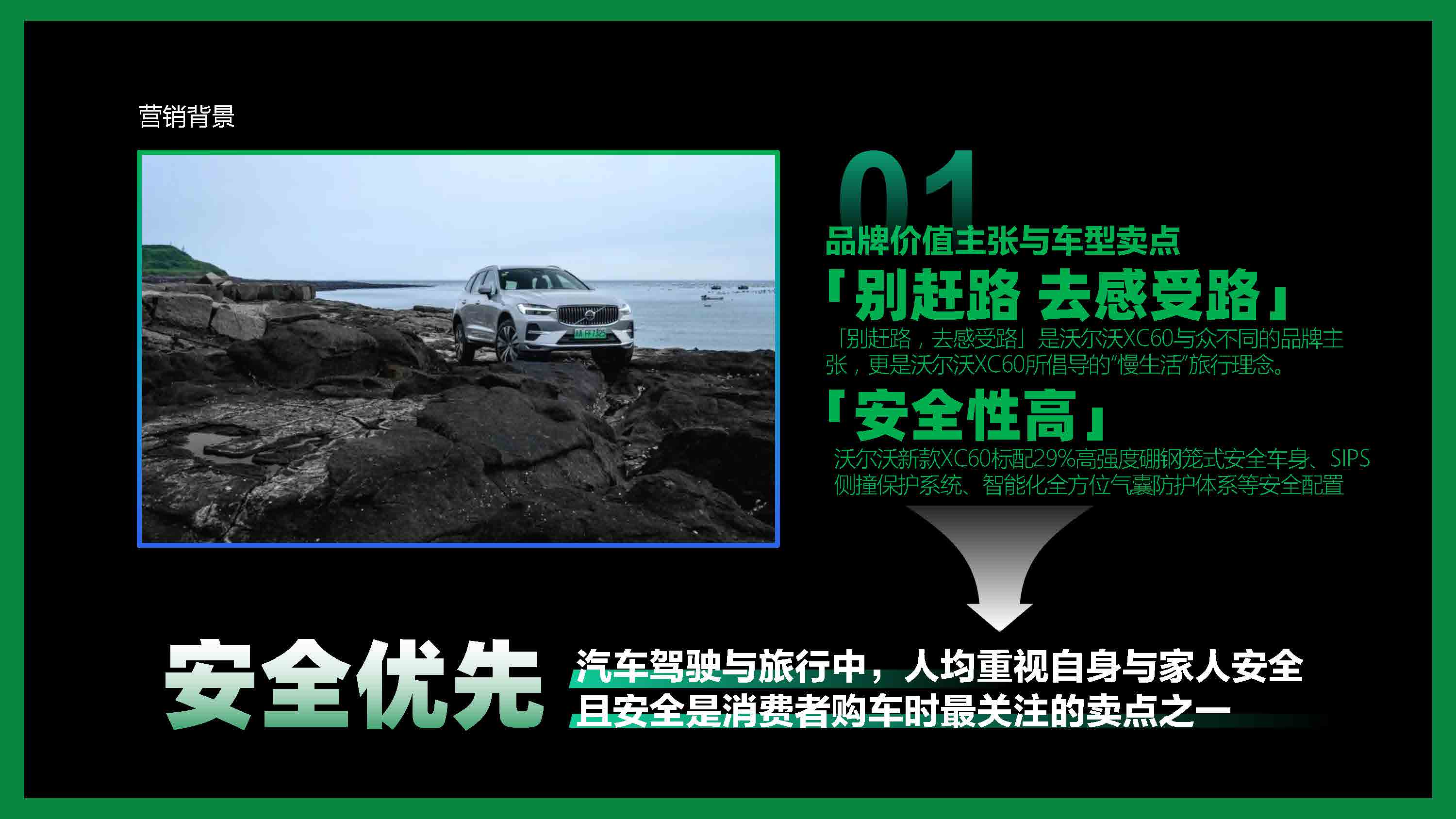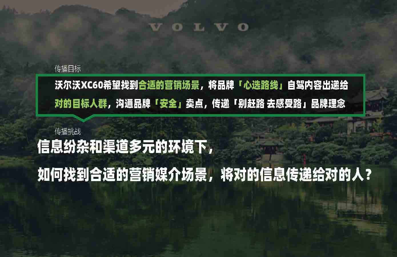 沃尔沃新款XC60提出“别赶路,去感受路”理念,将一份自驾游「心选路线」内容传递给品牌人群和自驾游人群。让更多人了解沃尔沃品牌理念和车型安全卖点。