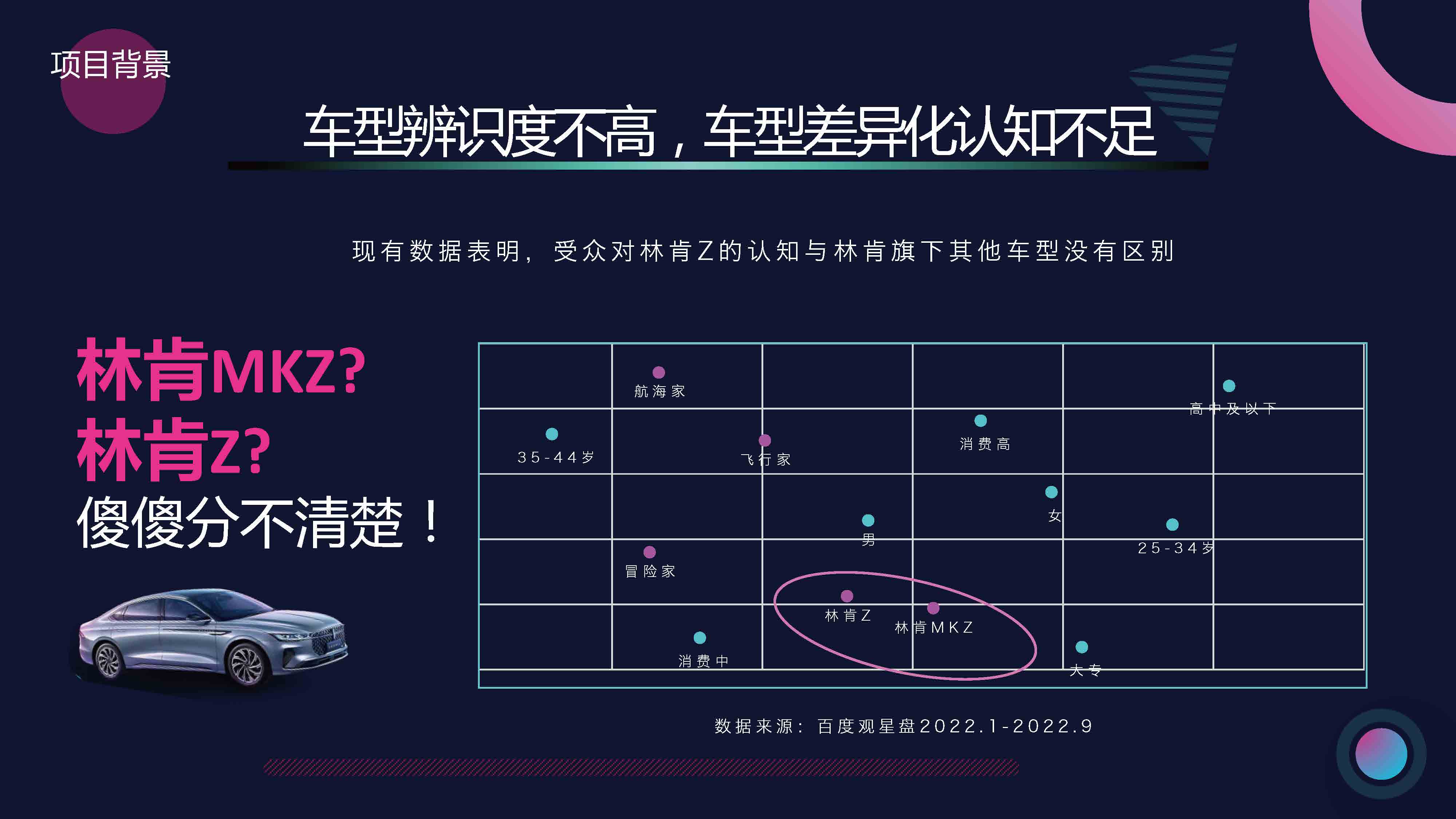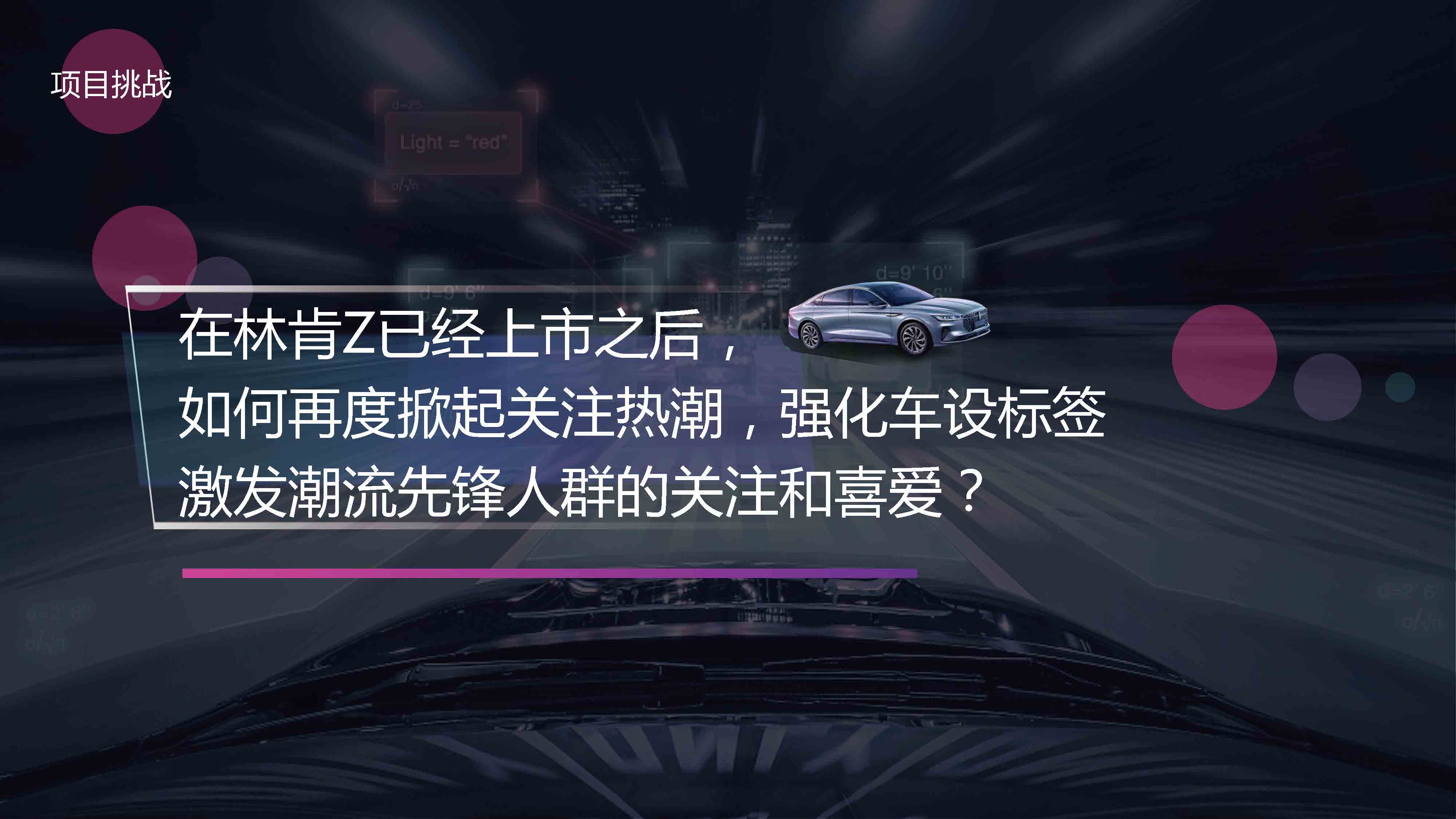 林肯Z定位智能新生代座驾,但上市后车型辨识度不够,如何再度掀起车型关注热潮,强化车设标签,激发潮流先锋人群的关注和喜爱成为难题。